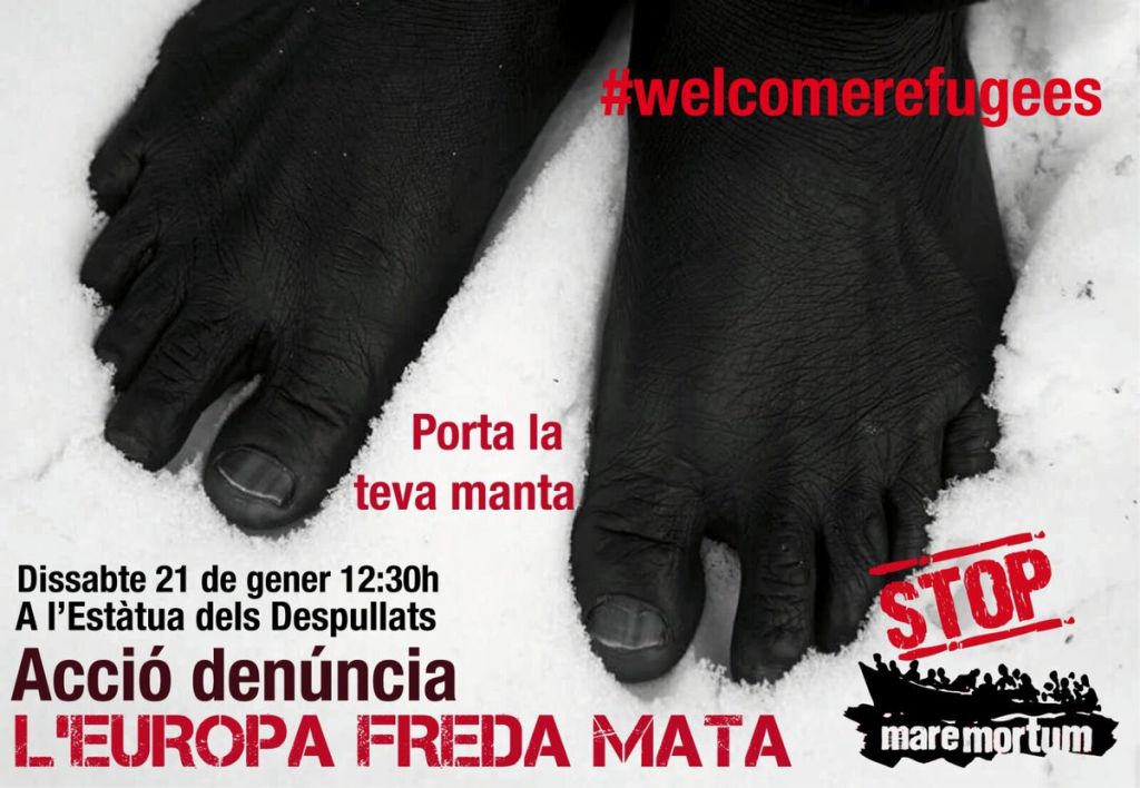 S’ha organitzat una concentració a l’Estàtua dels Despullats a partir de dos quarts d’una. Amb el lema ‘L’Europa freda mata’ es vol deixar palesa les crítiques al posicionament dels Governs europeus davant l’arribada de persones que fugen dels conflictes bèl·lics.
