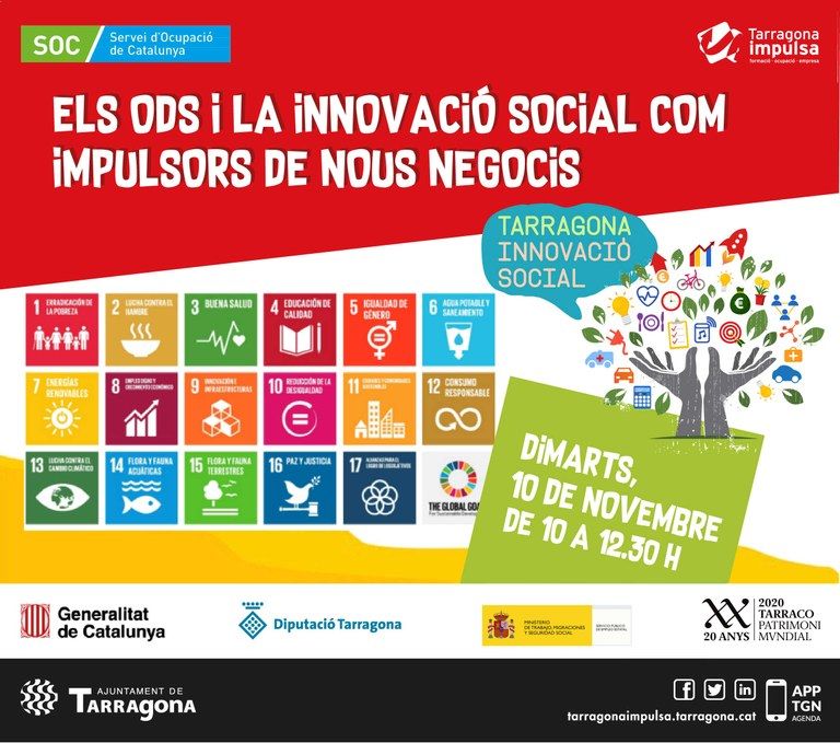 Tarragona Impulsa organitza la jornada “Els ODS i la Innovació Social com impulsors de nous negocis” per aquest dimarts a partir de les 10 del matí. La sessió serà virtual i es parlarà de la metodologia d’ús dels Objectius de Desenvolupament Sostenible (ODS) per aplicar-los en l’àmbit local, amb un exemple innovador d’una empresa que els aplica en el seu model de negoci. Així mateix, també es donaran a conèixer els projectes emprenedors que han participat en la 4a edició del programa “Tarragona innovació social” (TIS).