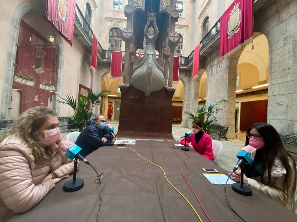 Des del Pati Jaume amb la consellera de Ciutadans, Lorena de la Fuente, la portaveu del PSC, Sandra Ramos, en nom del Govern municipal, la consellera dels comuns, Carla Aguilar-Cunill i el conseller d’ERC, Jordi Fortuny.