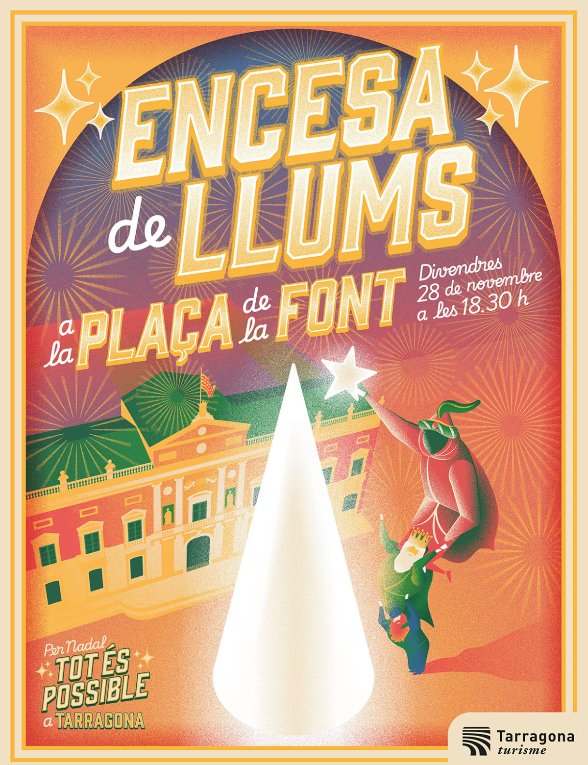 Per Nadal tot és possible a Tarragona és el lema de la campanya de les festes nadalenques d’aquest 2025. Un eslògan que acompanya la imatge dissenyada per l’il·lustrador Marc Volpini que fa una proposta basada en la nostàlgia dels records del Nadal.